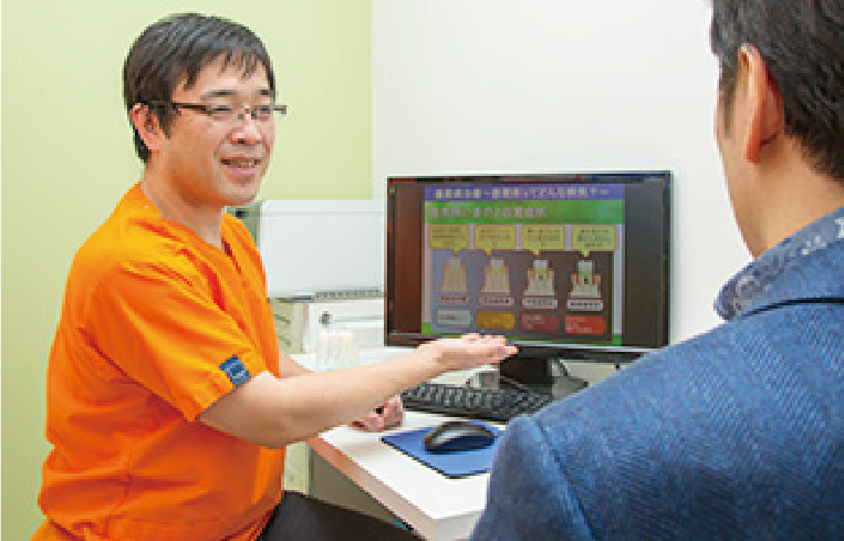 治療の節目に、院長や歯科衛生士が丁寧に説明を行います。